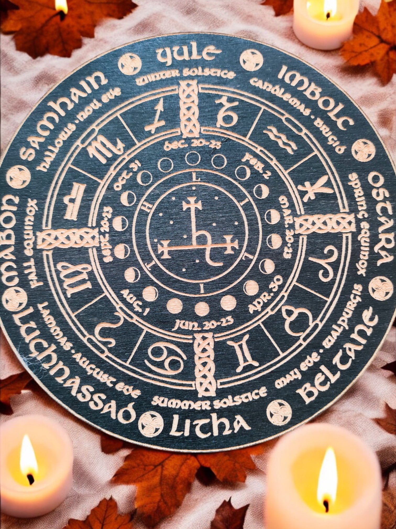 Первый урожай. Время собирать плоды, благодарить землю и себя. Это праздник зрелости, ответственности, щедрости. Хорошо печь хлеб, делиться, передавать магию дальше. Здесь будет уместно использовать декоративное Колесо с объёмной гравировкой — как символ спелости и наполненности.