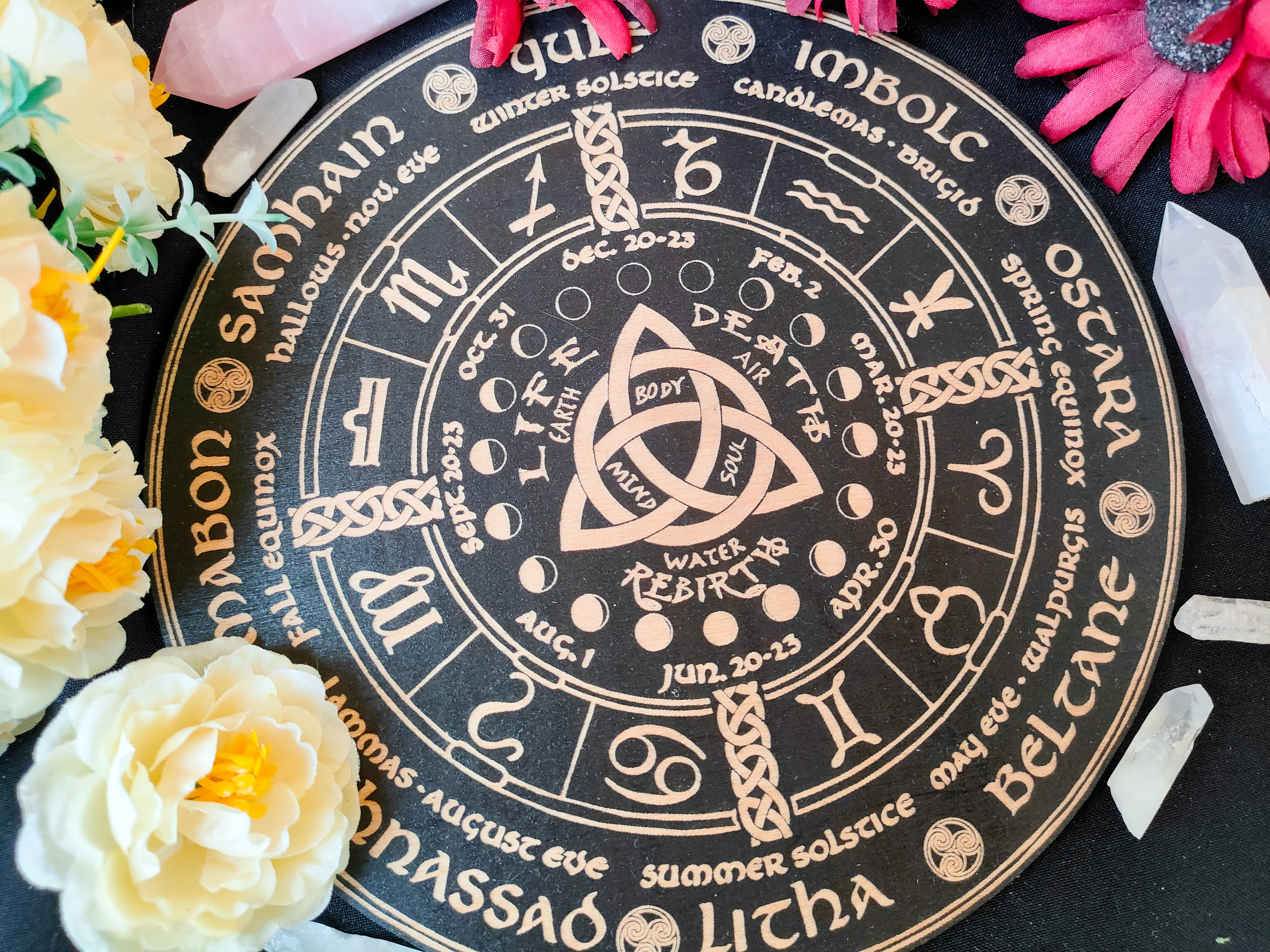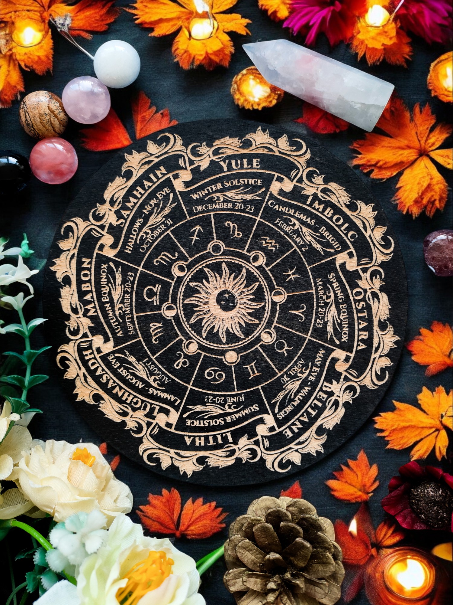 Если есть Колесо года, которое резонирует как точка намерения — поставьте его рядом, как магический фокус. Пусть оно «собирает» свет.