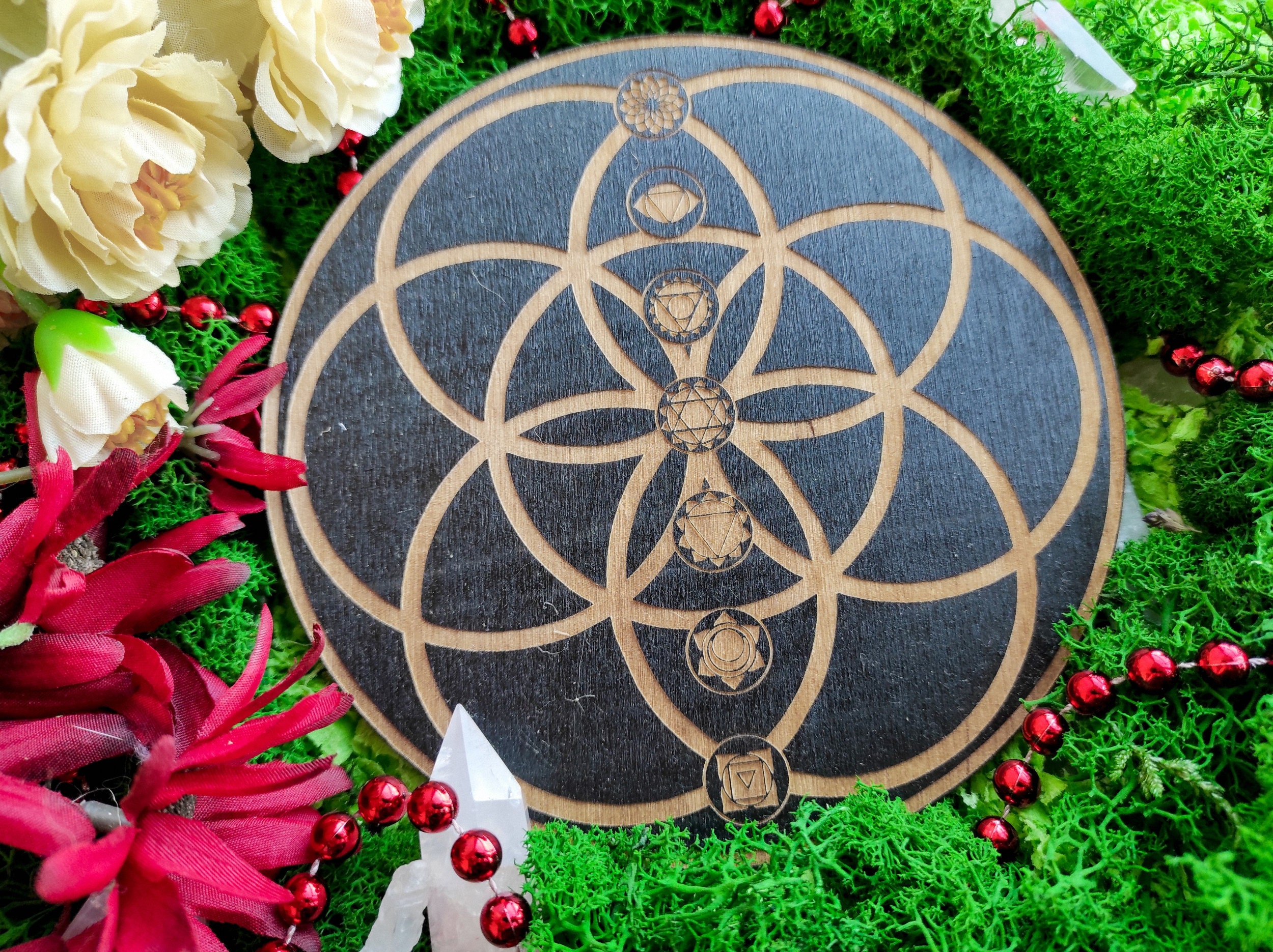 Создавать уголок спокойствия — место, где можно почувствовать себя в безопасности. Для этого хорошо подходят предметы, которые несут в себе символику целостности, например «Семя жизни» — сакральная геометрия для алтаря. Его узор помогает почувствовать внутреннюю гармонию и вернуть сердечному центру баланс.